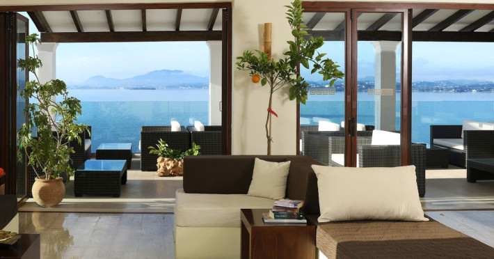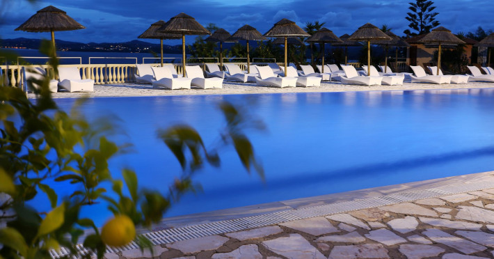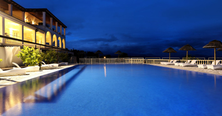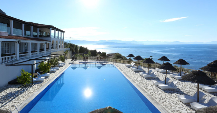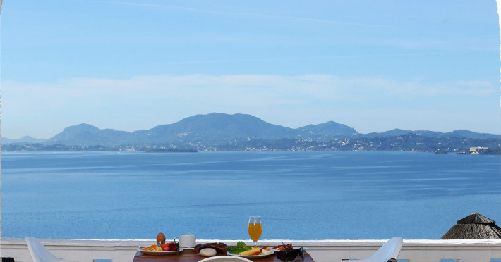 Welcome to Pantokrator Hotel Situated northeast of Corfu town in Barbati, in one of the most picturesque villages on the island of Corfu the Pantokrator Hotel is set among the foothills of the impressive Pantokrator Mountain. This specific part of the island is renowned for its breathtaking panoramic views over the southern part of Corfu, the coastline of Albania, the Greek mainland and of course the crystal-clear blue waters of the Ionian Sea. Pantokrator Hotel is built in the typically Mediterranean architectural style where the amphitheatrically setting of room blocks provide a village-style environment and stunning views. The 102 rooms are boutique-style each with its own unique character. The interior decoration makes them each one of a kind while large balconies with their stunning views over the Ionian Sea, Corfu town, the Greek mainland and the Albanian coastline ensure a tranquil carefree summer holiday. Hanging over the majestic Barbati beach and overlooking the Ionian Sea, the hotels generously sized swimming pool invites you for a refreshing swim. Next to it, there is also a smaller sized children’s pool. Our guests relaxing by the poolside, lying on the sun beds and being under the famous Greek sun may enjoy a drink or a snack from our pool bar. For those who are more energetic, there is a newly- constructed gym right above the swimming-pool area and on top of the pool bar. Our privileged guests can enjoy their fitness session as they combine it with the relaxing panoramic views. The Barbati beach, which has been awarded by the world-renowned eco-label Blue Flag, is only 300 meters away from our premises. There is also a small cove right in front of the hotel.                                                                                                                     Hotel amenities also include “The Olive Tree Restaurant“, with panoramic views, 24-hour reception service, currency exchange, postal services, fax services, accessible free outdoor parking, baggage hold, hotel-wide air-conditioning and free WiFi.  Our friendly, knowledgeable, multi-lingual team is always available and happy to assist you during your stay at Pantokrator Hotel Corfu.