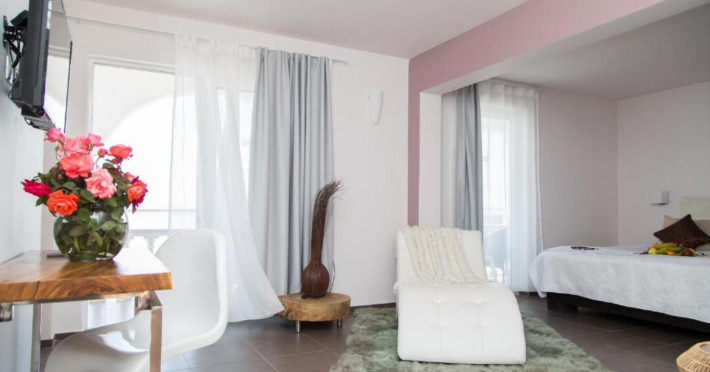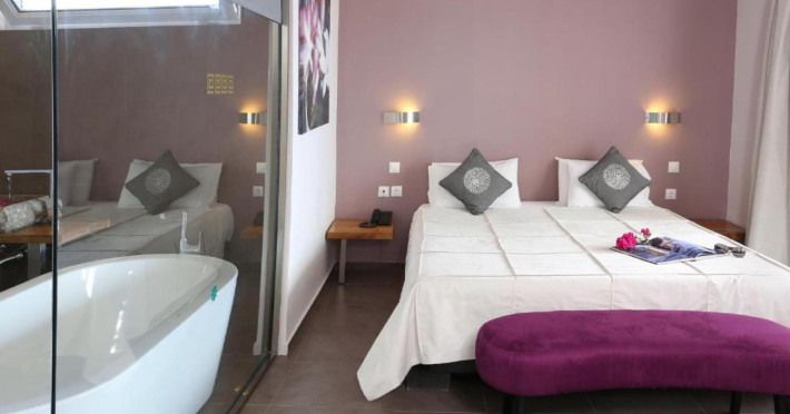 Pantokrator Hotel is built in the typically Mediterranean architectural style where the amphitheatrically setting of room blocks provide a village-style environment and stunning views. The 102 rooms are boutique-style each with its own unique character. The interior decoration makes them each one of a kind while large balconies with their stunning views over the Ionian Sea, Corfu town, the Greek mainland and the Albanian coastline ensure a tranquil carefree summer holiday.