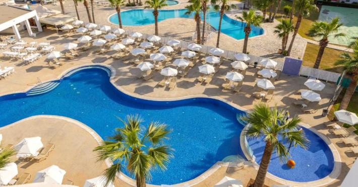 Oaspeții se pot bucura de două piscine exterioare inconjurate de șezlonguri și umbrele, un restaurant principal cu preparate internaționale și cipriote, precum și un snack bar langă piscină. Pentru cei mici există o piscină dedicată și un loc de joacă.
