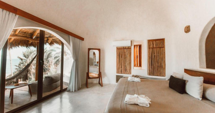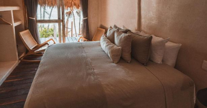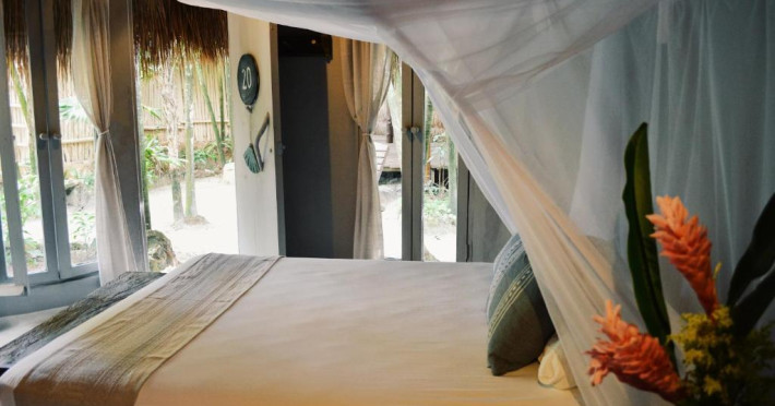 Cabinele ecologice de la Papaya Playa Project sunt decorate modest, cu tavan inalt și o mulțime de lumină naturală. Acestea beneficiază de baie privată. Unele au vedere la mare sau la grădinile tropicale.