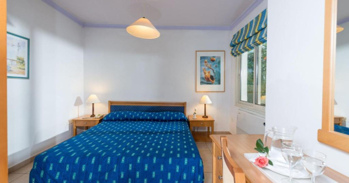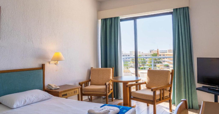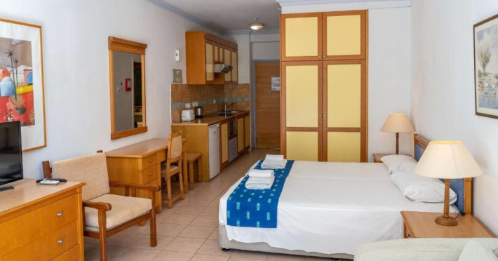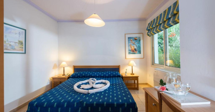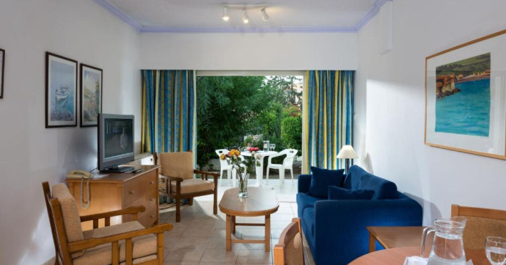 Camerele luminoase de la Paphos Gardens Holiday Resort sunt dotate cu aer condiționat și Tv cu canale prin satelit. Fiecare cameră dispune de cană pentru prepararea apei calde. Oaspeții pot solicita serviciul de room service pentru a servi masa sau diverse băuturi. Oaspeții au acces gratuit la serviciul Wi-fi în camere. Camerele au balcon cu vedere la piscină sau la grădină. În camere există baie cu cadă sau duș ce are în dotare foehn și articole de toaletă gratuite. Există unități de cazare care au chicinetă utilată cu frigider și ustensile de bucătărie. De asemenea, sunt disponibile o zonă de luat masa și un cuptor cu microunde. Proprietatea oferă camere pentru familie cu o suprafață mai mare și un număr mai mare de paturi față de cele standard.