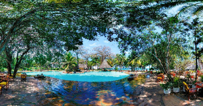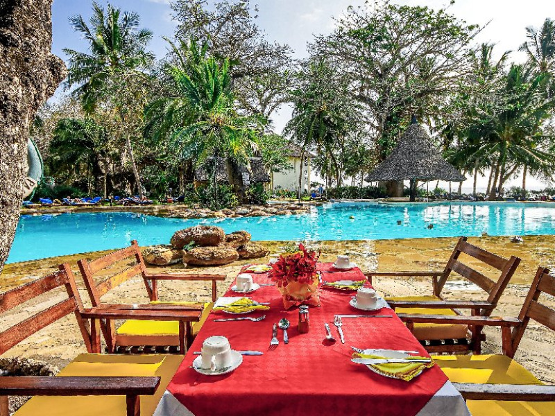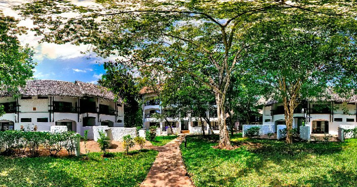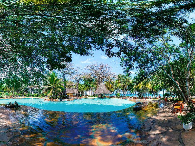 Hotelul dispune de 150 de camere de diferite categorii, amenajate in stil african traditional. Este situat pe coasta sudica a Mombasei, intr-o gradina tropicala bine intretinuta, cu palmieri si baobabi impresionanti, cel mai vechi avand peste 500 de ani. Complexul este construit in stil swahili local si este format din mai multe cladiri cu doua etaje, amplasate in gradina si in apropierea plajei.