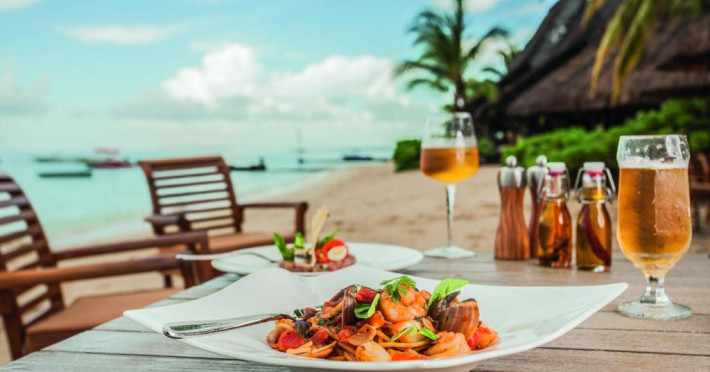 Restaurantul tip bufet Le Brabant serveste preparate din bucătăria internatională, iar restaurantul La Palma oferă specialităti italienesti. Restaurantul Blue Marlin este specializat in fructe de mare, iar La Ravanne oferă preparate creole inedite. De asemenea, oaspeții au acces la cele 4 restaurante și la facilitățile de la Dinarobin Beachcomber Golf Resort & Spa, aflat la doar 5 minute de mers pe jos.