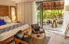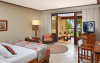 Dormitorul cu un design curat si elegant se extinde pe o zona confortabila de lounge si terasa, unde oaspetii se vor bucura de o vedere minunata a lagunei peste gradinile luxuriante. Baia privata este plina de lumina naturala moale si are accesorii de inalta calitate, oferind alegerea intre o baie relaxanta in cada sau un dus revigorant.