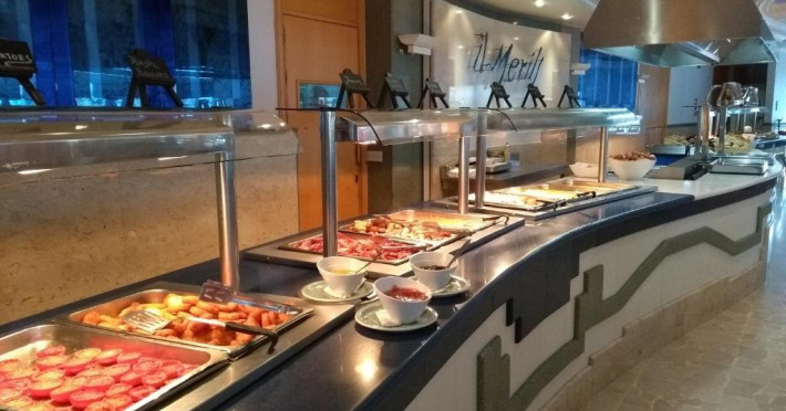 Proprietatea serveste zilnic un mic dejun continental tip bufet. De asemenea, oaspetii pot lua masa la unul dintre cele 3 restaurante ale hotelului. Masa de pranz si cina sunt servite sub forma unui bufet mediteranean bogat, iar hotelul oferă si un meniu à la carte.