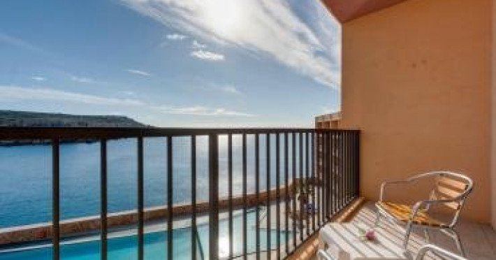 Descriere: Hotelul este amplasat intr-un loc spectaculos cu vedere la mare si la golf, si cu vedere catre insulele Gozo & Comino. In apropiere exista o statie de autobuz cu legaturi catre orasul Valletta si Aeroportul International din Malta.Dotari camere: Toate tipurile camera (dubla standard, dubla cu vedere la mare sau golf, junior suite) sunt dotate cu sistem de aer conditionat/ incalzire centrala, televizor, telefon, internet wifi gratuit, facilitati pt preparare ceai/cafea, baie cu dus, balcon.