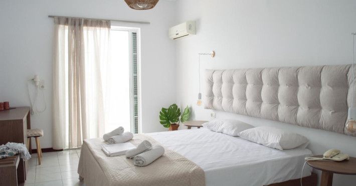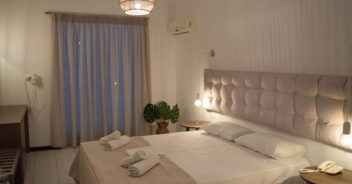 Sunt disponibile 15 camere. În camere există baie cu cadă sau duș prevăzută cu foehn. Camerele confortabile de la Paradise Beach Hotel sunt dotate cu pardoseală de gresie/ marmură, aer condiționat, Tv și seif. Oaspeții au la dispoziție serviciul de room service pentru a servi masa sau diverse băuturi. Unele camere au balcon cu vedere la mare sau la piscină. Oaspeții au acces gratuit la serviciul Wi-fi în camere. Curățenia in cameră se face zilnic. Fiecare unitate de cazare are frigider. Proprietatea oferă camere pentru nefumători.
