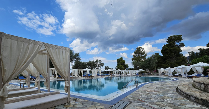 Paradise Resort Evia is a tranquil five-star beachfront hotel located in Eretria, Evia. It combines understated luxury with the natural beauty of the surroundings, offering an ideal setting for relaxation.The resort features 322 rooms and bungalows, many with sea or garden views, two large outdoor swimming pools, a spa, as well as two restaurants and three bars. Situated close to Eretria Village and the Ancient Theatre, it is an ideal choice for couples and families.Paradise Resort Evia is a tranquil five-star beachfront hotel located in Eretria, Evia. It combines understated luxury with the natural beauty of the surroundings, offering an ideal setting for relaxation.The resort features 322 rooms and bungalows, many with sea or garden views, two large outdoor swimming pools, a spa, as well as two restaurants and three bars. Situated close to Eretria Village and the Ancient Theatre, it is an ideal choice for couples and families.