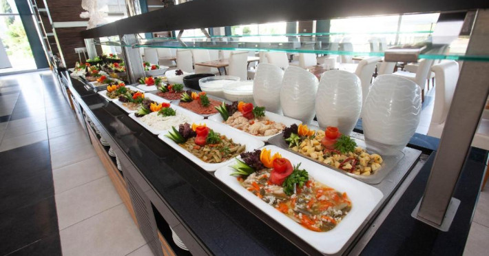 La Paradise Resort Ozdere oaspeții au la dispoziție 2 restaurante unde pot savura mâncăruri delicioase, în stil bufet sau à la carte. Preparate din bucătăria internațională așteaptă să fie degustate în fiecare zi la micul dejun, prânz și cină. Masa poate fi servită atât în interior, cît si în aer liber, pe terasă, în funcție de vreme. 3 baruri, dintre care unul la piscină și unul pe plajă, sunt disponibile cu o ofertă variată de băuturi răcoritoare și alcoolice.