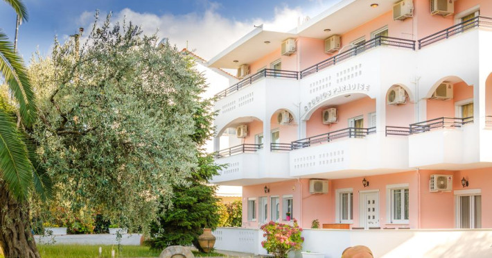 Paradise Studios este o proprietate situată în Thasos, care oferă unități de cazare cu aer condiționat, grădină și o terasă unde oaspeții pot petrece timp împreună cu prietenii sau familia. Proprietatea are servicii de închirieri auto. Se oferă acces gratuit la internet Wi-fi în spațiile publice. Parcarea este disponibilă la proprietate gratuit.