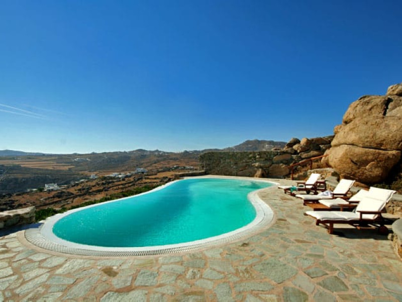 Soak up the Mykonian summer by choosing Paradise Villas Mykonos as your getaway.Situated in the heart of the famous Super Paradise Beach, lies idyllic the private complex of Paradise Villas, comprising three villas.The properties are semi-detached from one another, each has its own private pool, private outdoor setting and entrance. All have been outfitted with comfortable materials and designed in typical Cycladic and traditional architecture.Villa Super One celebrates Mykonian architecture of white elements and traditional stone, which have been meticulously worked on whereas the outdoor area with the huge rock formations creates stunning scenery.Rethink relaxation as the villa offers a private pool, naturally sheltered by gigantic rocks. The outdoor dining area is equally welcoming with an elegant dining table, a large bar, a built-in BBQ and a state of the art sound system. Its position, just a few steps away from the pool and the villa’s kitchen, allows accommodating friendly get together as well as more formal dinners, in a natural atmosphere created by the stone-built walls and the enormous surrounding rocks.Villa’s Super One interiors unfold in two levels, following the atmosphere of relaxation.The upper level features a fully equipped modern, open plan kitchen along with the main dining room, where guests can relish the island’s mouthwatering culinary delights. The comfortable living room, also in the upper level, creates a cosy atmosphere and the thing that makes the most lasting impression on the visitors is the fabulous view of the infinite blue.The lower lever hosts Villa’s Super One five bedrooms. Each bedroom complements the relaxed ambiance with its elegant furnishing and has two twin beds or a double bed, a spacious en-suite bathroom, and direct access to the terrace.The architecture of Villa SuperOne is in full harmony with the Mykonian style, while the private pool by the villa dominates the space. The outdoor terrace built around the pool combines white elements, local stone and wood with the traditional teak furnished pergola, reflecting the Mykonos way of life. Nowhere is more inviting than the outdoor sitting area, the Barbecue, the mini bar with the sound system and the stone built lounge area which set the ideal scenery for guests to relish and relax from early morning until late at night, overlooking the sapphire blue sea.Villa’s Super Two interior is specially designed in order to keep the bedrooms separated from the living areas. The entrance level consists of an ergonomically designed kitchen and a spacious living room. The decoration and furnishing are a combination of minimal and traditional Cycladic style, with stone built sitting areas and wooden elements. The lower level hosts the three bedrooms of the villa. Each bedroom is equipped with all the modern amenities, including an en-suite bathroom, air-conditioning, TV set and access to the terrace through the staircase that leads to the pool.Villa’s Super Three bedrooms are situated on the lower floor and feature en-suite bathrooms and modern furnishing combined with all the necessary comforts. The entrance level consists of the living room, the lounge and the dining area, decorated with a combination of minimal and traditional Cycladic style, with stone built sitting areas and wooden elements. All the living areas of the entrance level have access to the terrace.The villa features an external space with a BBQ, a bar with a sound system and a traditional pergola inviting guests to enjoy the island’s appetizing culinary delights all day long. The private pool, accessible either from the separate bedrooms or from the staircase that leads to it, embraces the spirit of Mykonos summer life.The Shepherd's Cell harmoniously embraces the rocks that already existed and spreads in an area of 20 square meters approximately. It is equipped with a wardrobe, a TV and a safety box, while it also has a small bathroom with a shower.Outside the studio, a beautiful stone-paved courtyard under the large pergola ensures coolness and shade during the day. The visitors can enjoy the excellent view sitting on the sofa or having their meal in the open kitchen which has a sink, a small refrigerator, storage areas, a BBQ and an electric cooker. All the necessary equipment can be found on the kitchen counter (coffee maker, toaster cutlery etc). The Shepherd's Cell also has wi-fi internet and a stereo system.In front of the Shepherd's Cell there is a large built tub from which one can enjoy the view of the Super Paradise Beach. The Shepherd's Cell is located near Villa Zephyrus One and next to the swimming pool of Villa Zephyrus Two, but at the same time Is independent. It can be used as an exclusive space for two people but also can be the extra room that the tenants of any of the villas may require.Our on-site team will unlock Mykonos treasures and design a mesmerizing experience for your perfect villa getaway.Villa Clif Top in HoulakiaIf you are seeking a lifetime villa experience in Mykonos, which is reputed to be one of the most beautiful, cosmopolitan, and famous Greek islands, Mykonos Villa Clif Top invites you to make your holiday dreams come true. Mykonos Villa Clif Top is built atop the Hill of Houlakia, over the homonymous bay, facing West and covering avast private property.An oasis of tranquility reveals right before your very eyes, due to its dominant position.Overlooking Mykonos town, as well as the nearby islands of Delos, Rhenia, Syros, and Tinos, Mykonos Villa Clif Top offers its guests a picturesque view from dawn and as the sun goes down and the sea and sky are painted in shades of stunning colours, gaze at the tiny lights flickering as the night falls and you live the moment of your dreams.Whitewashed walls and traditional stone encapsulates the Cycladic spirit. The Villa’s spacious terrace entices you to enjoy the Greek sun and the Aegean breeze all day long.Think relaxation under the shadow of Ca