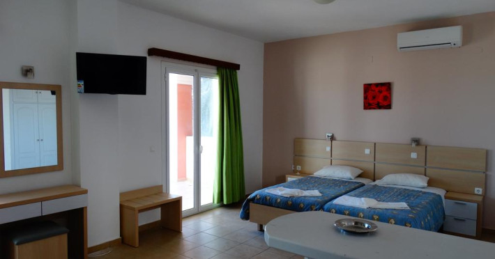 Fiecare cameră dispune de cană-fierbător. Camerele confortabile de la Paradiso Aparthotel au pardoseală de gresie/ marmură, aer condiționat, Tv cu canale prin satelit și seif. Unele camere au balcon cu vedere la mare sau la piscină. În camere există baie cu cadă sau duș prevăzută cu foehn. Fiecare unitate de cazare include o chicinetă utilată cu frigider, plită de gătit și ustensile de bucătărie. De asemenea, este disponibilă o zonă de luat masa. Proprietatea oferă camere pentru familie cu o suprafață mai mare și un număr mai mare de paturi față de cele standard.