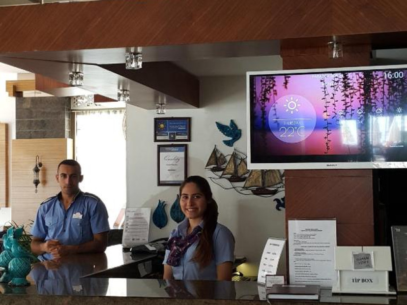 Camerele luminoase și confortabile sunt dotate cu aer condiționat, TV prin satelit și balcon, multe dintre ele oferind vedere spre mare. La restaurantul principal, bucătarii pregătesc specialități turcești și internaționale, iar barul de la piscină servește cocktailuri răcoritoare pe tot parcursul zilei.