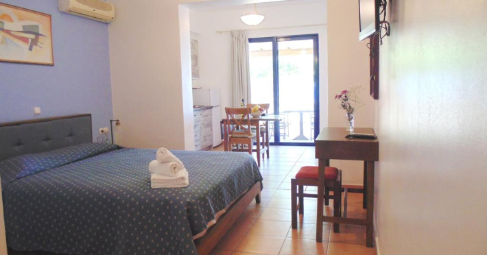 Fiecare cameră oferă cană-fierbător și mașină pentru prepare cafea sau ceai. Oaspeții pot solicita serviciul de room service pentru a servi masa sau diverse băuturi. Unele camere au balcon cu vedere la mare, unde oaspeții pot admira apusul sau răsăritul soarelui. În camere există baie cu duș prevăzută cu foehn. Camerele de la Paraktio Beach Apartments sunt dotate cu aer condiționat, Tv cu canale prin satelit și seif. Oaspeții au acces gratuit la serviciul Wi-fi în camere. Toate camerele spațioase de la Paraktio Beach Apartments au zonă de relaxare. Fiecare unitate de cazare include o chicinetă utilată cu frigider, plită de gătit și ustensile de bucătărie. De asemenea, este disponibilă o zonă de luat masa. Proprietatea oferă camere pentru nefumători.