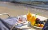Plaja cu nisip Plaja îngusta la hotel, se poate înota. sezlonguri si umbrele la 100 m - contra cost.