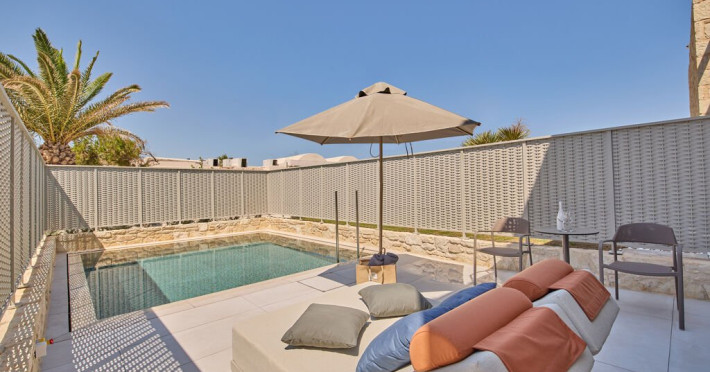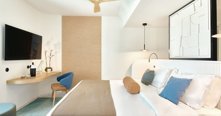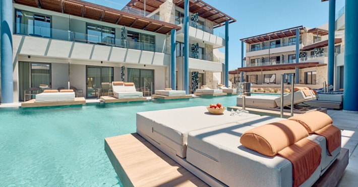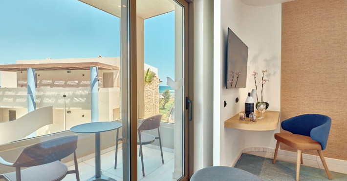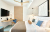 Dotari camera: Camerele si suitele includ aer conditionat individual, ventilator, Wi-Fi de mare viteza, Smart TV, seif electronic, minibar (bauturi racoritoare incluse si reumplute zilnic pentru oaspetii AI), Nespresso cu capsule zilnice, facilitati pentru ceai, mini-frigider, halate, papuci, prosoape pentru plaja/piscina, articole de baie premium, uscator de par, cantar, balcon sau terasa. Anumite tipuri de camere ofera hidromasaj privat, acces direct la sharing pool, piscina privata incalzita, gradina privata, echipament pentru Pilates/Yoga sau gazebo privat.