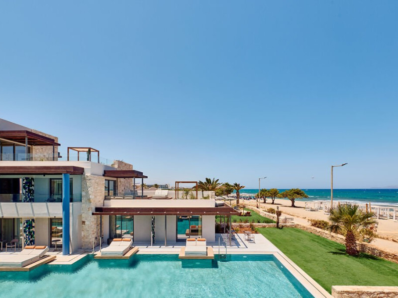 Descriere: Paralos Kosta Alimia este un hotel de 5 stele complet reconstruit, situat chiar pe plaja in Anissaras. Conceput pentru o experienta premium, ofera camere moderne, junior suite si suite elegante, unele cu hidromasaj privat, piscina swim-up sau piscina privata incalzita. Oaspetii se pot bucura de gastronomie rafinata in restaurante tematice, servicii exclusiviste, zone dedicate relaxarii si doua piscine luxoase cu vedere la mare.Localizare: Hotelul se afla pe plaja, pe o linie de coasta privata de aproximativ 150 m, in Anissaras, la aproximativ 20 km de Aeroportul International Heraklion.