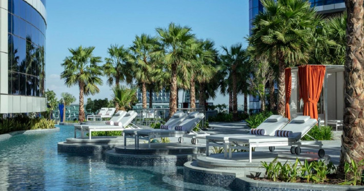 Relaxing sun loungers and private cabanas