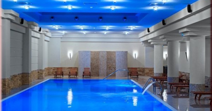 Piscina acoperita, cu apa incalzita, de dimensiuni semiolimpice, in cadrul complexului.