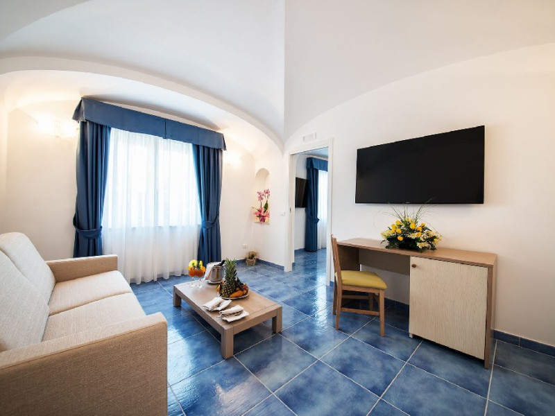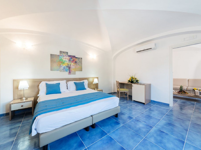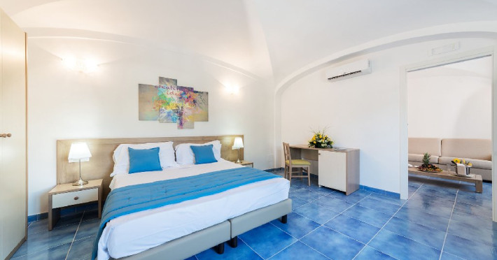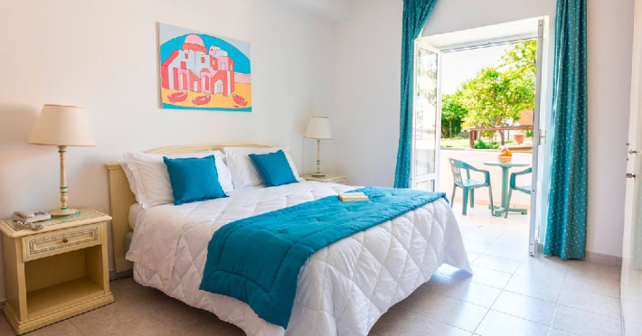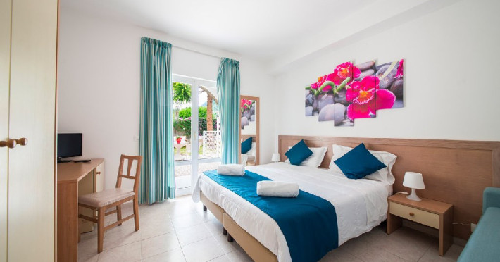Dotari camere: camere foarte spatioase cu design mediteranean, baie privata, cosmetice baie incluse, set halat si papuci,terasa cu gradina, aer conditionat,