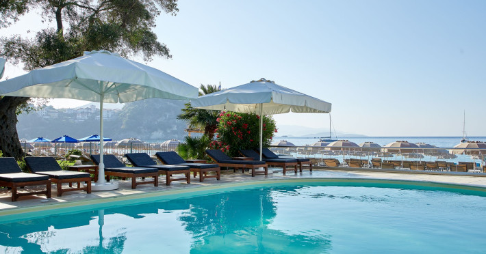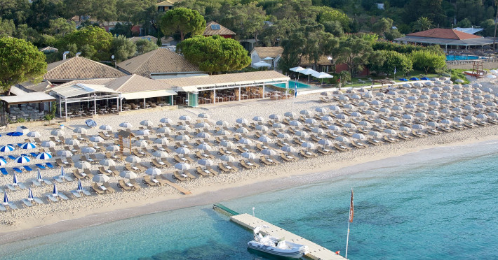 Discover the definition of laid back luxury at our unique beach resort in Parga. Enjoy premium accommodation, with over a hundred rooms and suites located in individual and bungalow-style buildings scattered around our verdant gardens, amid centuries-old olive trees and a wealth of local flora. Our beachfront resort is right on the Blue Flag Valtos Beach, and the picturesque town of Parga is just a short walk or even shorter water-taxi ride away. Whether you are travelling as a couple or as a family with children, take advantage of our extensive onsite amenities and plan the perfect beach holidays! Our guests’ experience is our top priority, and our staff fully embraces the culture of laid back but premium hospitality. Warm, friendly, our people are helpful but always respectful of your privacy. Most of our members of staff are locals; their bond to the region helps enhance your experience of local culture and true Greek hospitality. Wining and dining is an important part of your holiday in Greece. Our Thalassa beachfront restaurant is open for lunch and dinner, serving traditional Greek dishes with a twist. In a picture-perfect seaside setting with a view of the beach, the Venetian Castle and the town of Parga, enjoy a dinner of Greek fusion cuisine accompanied by live music sets, or take in our special weekly Greek and Barbecue nights. For refreshments, drinks, cocktails and snacks, Ammos Beach Bar is open all day long. Relax on the large and comfortable sunbeds and take advantage of the full service available on the beach. Parga Beach Resort also offers a range of other facilities to help you fully enjoy your stay. There are four swimming pools plus one children’s outdoor heated pool, indoor and outdoor playgrounds for the little ones, a wellness center with a spa and gym, a fully equipped conference room, a playroom, and free parking on the premises. Our guests’ wellness is especially important to us. Our wellness center is inspired by our verdant gardens and the healing properties of nature; facilities include hammam baths, couples massage services, a relaxing area, as well as several wellness corners scattered around the resort grounds.