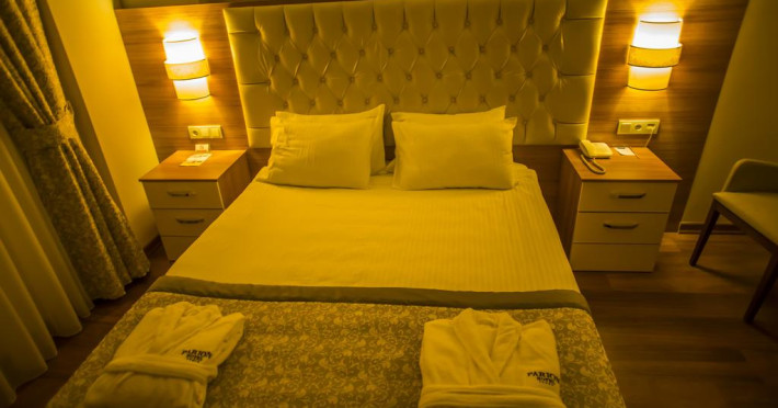 Oaspeții au la dispoziție serviciul de room service pentru a servi masa sau diverse băuturi. Camerele luminoase de la Parion sunt dotate cu aer condiționat și Tv cu canale prin satelit. În camere există baie cu cadă sau duș prevăzută cu foehn. Oaspeții au acces gratuit la serviciul Wi-fi în camere. Curățenia in cameră se face zilnic. Proprietatea oferă camere pentru familie cu o suprafață mai mare și un număr mai mare de paturi față de cele standard. Se pot rezerva de asemenea camere pentru nefumători.