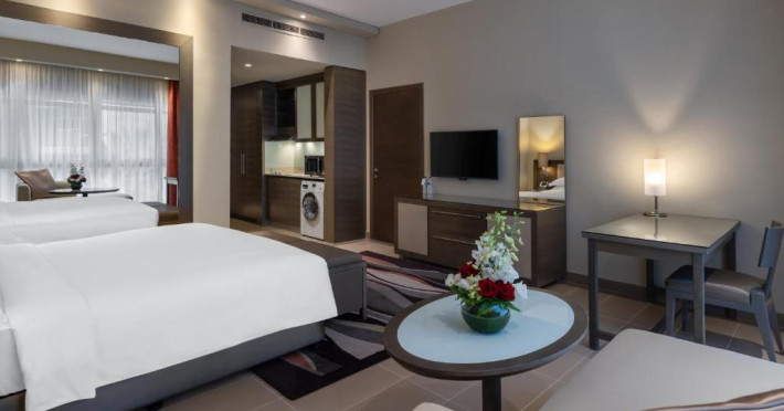 Cu decor elegant și amenajări spațioase, cele 172 de apartamente complet mobilate și cu servicii hoteliere includ studiouri, apartamente cu unul, două și trei dormitoare. Fiecare are un televizor LCD, bucătărie cu aragaz, frigider și alte electrocasnice.