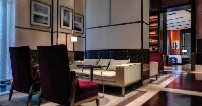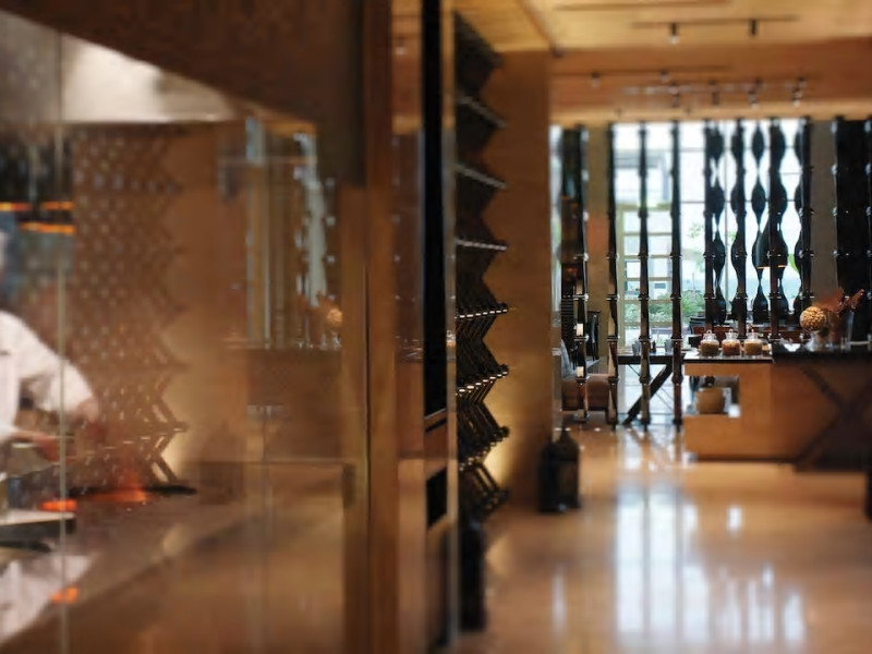 The Library is a contemporary tea lounge located in Park Hyatt Abu Dhabi hotel and serving selected teas and coffee specialties, as well as home-made chocolates and pastries. With its orange leather panels, accents of black marble and an open fire feature, The Library is the perfect place for intimate meetings in a residential setting. Open daily. Dress code: semi casual. Prior reservation recommended.