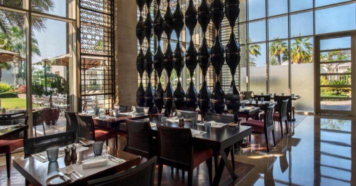 The Café serves authentic Middle Eastern specialties along with International dishes featuring an impressive show kitchen. Open daily for breakfast and lunch. Open Thursdays to Mondays for dinner. Dress code: casual.