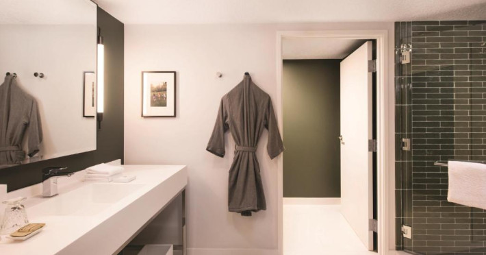 Fiecare cameră spațioasă de la Park MGM Las Vegas include un seif in cameră, umbrele opace, o chiuvetă supradimensionată și prize pe noptieră pentru telefoane și computere. Băile private includ un uscător de păr.