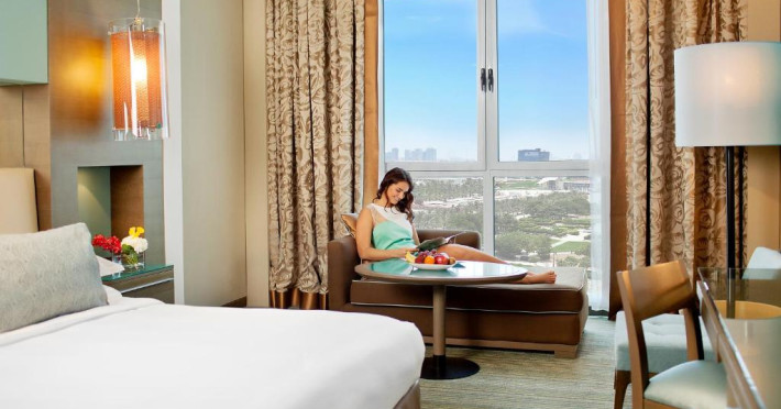 Oaspeții pot alege dintr-o mare varietate de mancăruri continentale, asiatice și arabe in restaurantele hotelului, in timp ce băuturi pot fi savurate la pub, restaurantul de specialitate și barul de la piscină.