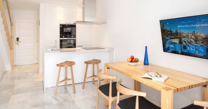 The hotel Parque Santiago IV is equipped with a 24h reception, internet access as well as a shop. In the outdoor area you will find a salt water pool. Furthermore, you can relax outdoors on a terrace. For the young hotel guests there is a playground. Catering For the meals, there are the cafeteria as well as the pool bar. Sports & Leisure To keep your fitness up on holiday, there is a gym for guests to use.The hotel Parque Santiago IV is equipped with a 24h reception, internet access as well as a shop. In the outdoor area you will find a salt water pool. Furthermore, you can relax outdoors on a terrace. For the young hotel guests there is a playground. Catering For the meals, there are the cafeteria as well as the pool bar. Sports & Leisure To keep your fitness up on holiday, there is a gym for guests to use.