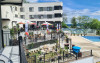 Oaspetii pot folosi terasa la soare sau piscina in aer liber, piscina exterioara pentru adulti (h 1.40) si piscina pentru copii (h 0.65) cu un spatiu generos pentru sezlon si baldachin si un pool bar si se pot bucura de vederea la Dunare in timp ce copiii se pot bucura de locul de joaca. Propietatea este dotata cu parcare interioara.