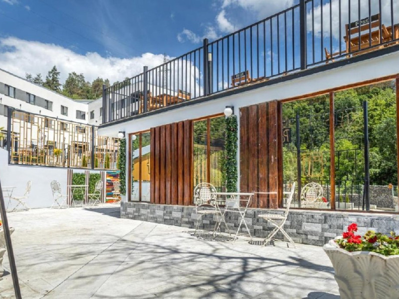 Oaspetii pot lua masa la restaurant (50 - 60 locuri) si se pot delecta cu bauturi la bar.