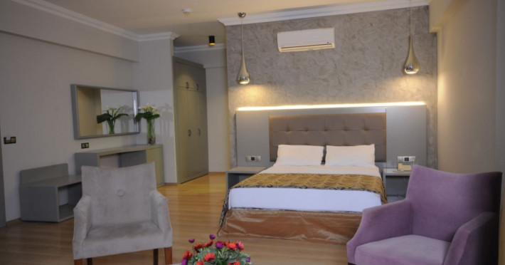 Fiecare camera dispune de: aer conditionat, seif, mini bar, balcon mobilat, chicineta, telefon, TV, baie cu dus sau cada, uscator de par.