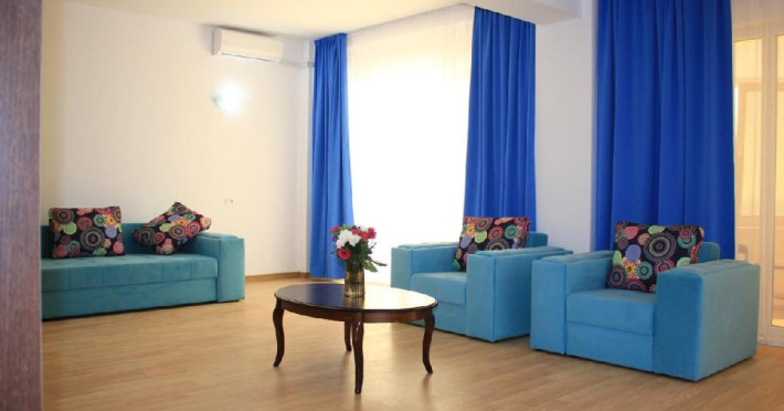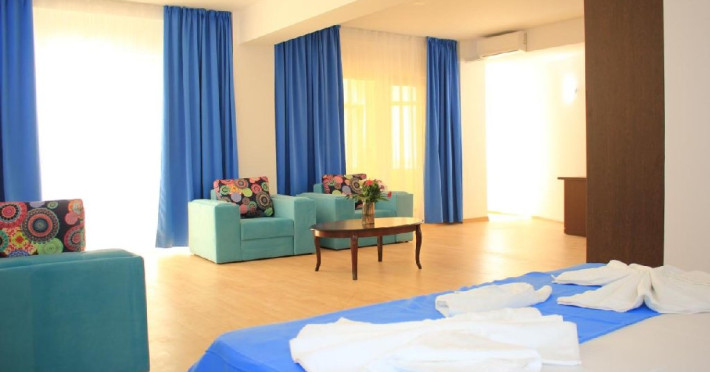 Suita: pat matrimonial(200x180), canapea extensibila, 2 fotolii extensibile, baie proprie cu dus , uscator de par,telefon, aer conditionat , minibar , seif tv lcd , wi-fi gratuit.