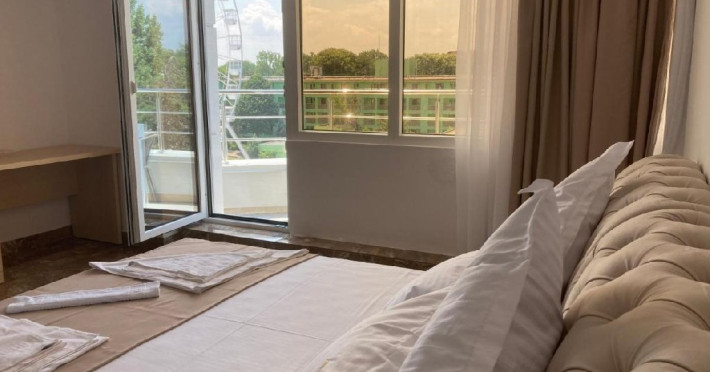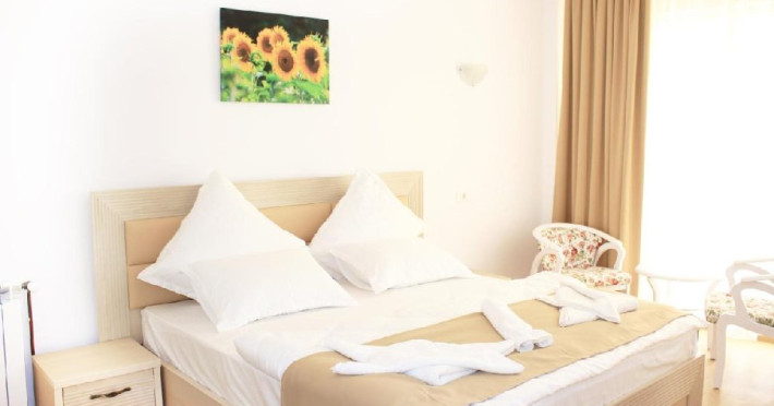 Specificam faptul ca amplasamentul hotelului este la cativa metri de plaja Belona fiind situat pe faleza statiunii in prima linie,cu vedere catre mare in vecinataea Aqua Park.
