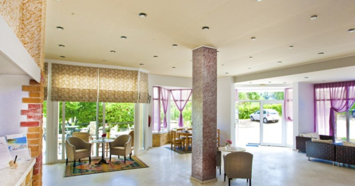 Hotelul Pashos, asezat pe o colina, inconjurat de o padure de pini, ofera o minunata priveliste asupra marii, fiind o adevarata oaza de relaxare pentru oaspetii sai.