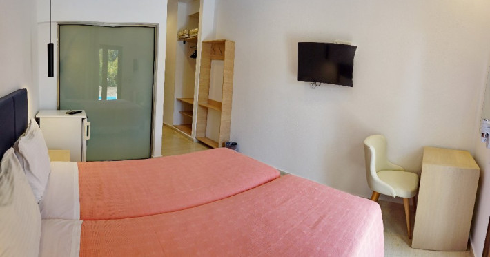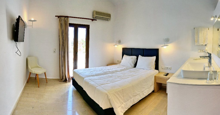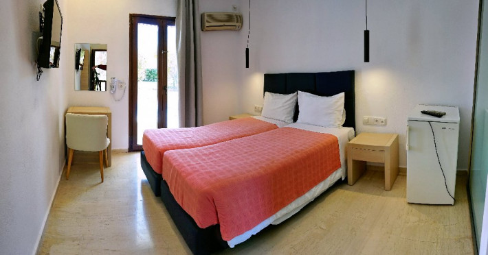 De asemenea, beneficiezi si de telefon, frigider si un televizor la cerere (canale grecesti), balcon, baie sau dus, mini bar sau mini-frigider, Wi-Fi si room service.