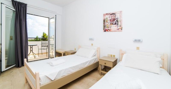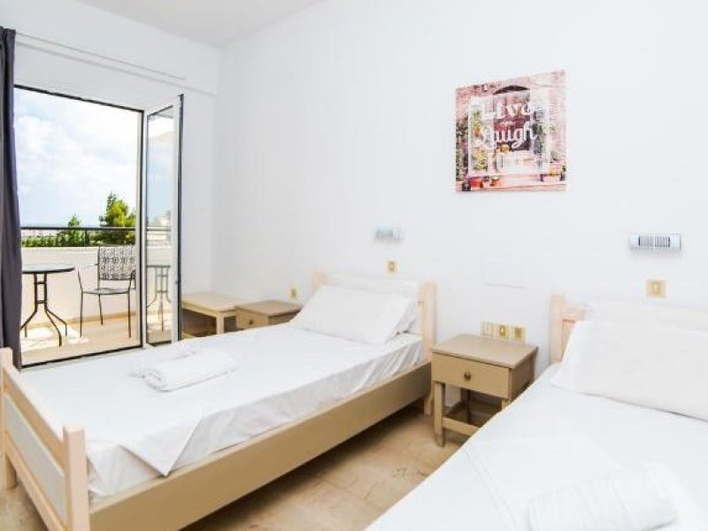 Dotari camere: Pasiphae Hotel dispune de 19 unitati de cazare: 13 camere duble (20 mp), 5 camere tripele (25 mp) si 1 camera single (18 mp).