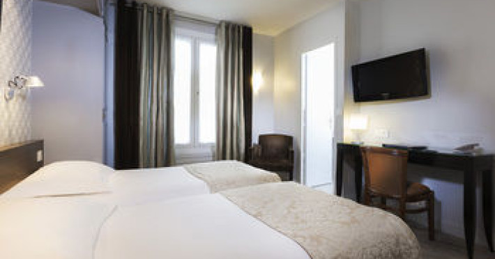 Near Eiffel Tower. A stay at Hotel Passy Eiffel places you in the heart of Paris, within a 5-minute drive of Eiffel Tower and Arc de Triomphe. This hotel is 1.5 mi (2.5 km) from Champs-Ãlysées and 2.6 mi (4.1 km) from Paris Expo Porte de Versailles. Make yourself at home in one of the 49 air-conditioned rooms featuring flat-screen televisions. Complimentary wireless Internet access keeps you connected, and satellite programming is available for your entertainment. Bathrooms have showers and hair dryers. Conveniences include phones, as well as safes and desks. Take advantage of the hotels room service (during limited hours). Quench your thirst with your favorite drink at the bar/lounge. Continental breakfasts are available daily from 7:30 AM to 10:30 AM for a fee. Make use of convenient amenities, which include complimentary wireless Internet access and concierge services.Datorita dinamicitatii domeniului disponibilitatea ofertelor se modifica de la un moment la altul. De aceea ofertele sunt valabile in limita locurilor disponibile. Agentia nu este responsabila pentru eventualele neconcordante care pot aparea intre informatiile privind tarifele si alte detalii din site si informatiile primite in agentie. In aceste cazuri vor avea prioritate, intotdeauna, informatiile primite in agentie.