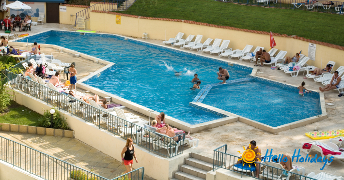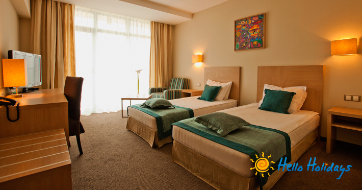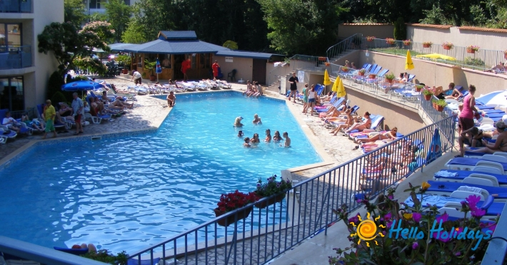 Hotelul Royal este situat într-o zonă plină de verdeaţă, la câteva minute de mers pe jos de centrul staţiunii Nisipurile de Aur și la 300 de metri de plajă. Oferă Wi-Fi gratuit, vedere panoramică la staţiune, o piscină în aer liber şi o piscină cu 4 tobogane pentru copii.