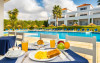 Toate unitățile sunt dotate cu băi complete și o zonă de relaxare spațioasă cu TV prin satelit. Chicinetele includ cuptor cu microunde și prăjitor de paine electric. Oaspeții iși pot lua masa pe balconul deschis spre grădină și piscină. In apartamente se face curățenie de 5 ori pe săptămană.
