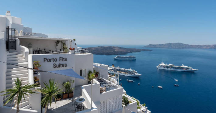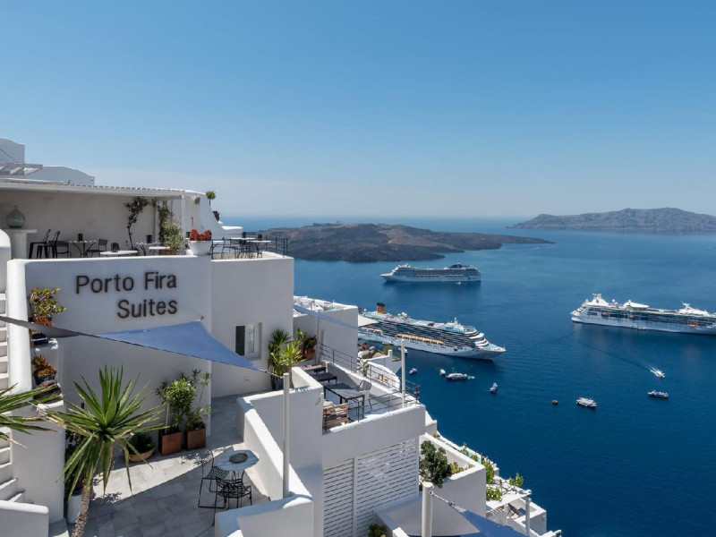 HeadLine : Near Orthodox Metropolitan Cathedral Location : When you stay at Porto Fira Suites in Santorini, you ll be in the historical district, within a 15-minute drive of Athinios Port and Ancient Thira. This upscale hotel is 0.1 mi (0.2 km) from Santorini Caldera and 7.4 mi (11.9 km) from Perissa Beach. Rooms : Make yourself at home in one of the 12 individually decorated guestrooms, featuring refrigerators and minibars. Rooms have private furnished balconies or patios. Complimentary wireless internet access keeps you connected, and 21-inch LCD televisions are provided for your entertainment. Private bathrooms with separate bathtubs and showers feature deep soaking bathtubs and rainfall showerheads. Dining : Enjoy a meal at the restaurant or snacks in the coffee shop/cafe. The hotel also offers room service (during limited hours). Unwind at the end of the day with a drink at the bar/lounge or the poolside bar. A complimentary cooked-to-order breakfast is served daily from 8:00 AM to 11:00 AM. Renovations : The following facilities will be closed during the winter: Spa tub CheckIn Instructions : Extra-person charges may apply and vary depending on property policy Government-issued photo identification and a credit card or cash deposit may be required at check-in for incidental charges Special requests are subject to availability upon check-in and may incur additional charges; special requests cannot be guaranteed This property accepts credit cards, debit cards, and cash Safety features at this property include a fire extinguisher, a first aid kit, and window guards Please note that cultural norms and guest policies may differ by country and by property; the policies listed are provided by the property Special Instructions : This property offers transfers from the ferry terminal and airport (surcharges may apply). To arrange pick-up, guests must contact the property 24 hours prior to arrival, using the contact information on the booking confirmation. The front desk is open daily from 8 AM - 11 PM. This property doesn t offer after-hours check-in. To make arrangements for check-in please contact the property at least 72 hours before arrival using the information on the booking confirmation. Guests must contact the property in advance for check-in instructions. Front desk staff will greet guests on arrival. For more details, please contact the property using the information on the booking confirmation. Please note that guests must descend 85 steps to reach the property. All guests must contact the property when they arrive at Metropolitan Cathedral (nearest landmark) for guidance and luggage assistance to the property. Guests can expect to wait 30-45 minutes for assistance. Disclaimer notification: Amenities are subject to availability and may be chargeable as per the hotel policy.HeadLine : Near Orthodox Metropolitan Cathedral Location : When you stay at Porto Fira Suites in Santorini, you ll be in the historical district, within a 15-minute drive of Athinios Port and Ancient Thira. This upscale hotel is 0.1 mi (0.2 km) from Santorini Caldera and 7.4 mi (11.9 km) from Perissa Beach. Rooms : Make yourself at home in one of the 12 individually decorated guestrooms, featuring refrigerators and minibars. Rooms have private furnished balconies or patios. Complimentary wireless internet access keeps you connected, and 21-inch LCD televisions are provided for your entertainment. Private bathrooms with separate bathtubs and showers feature deep soaking bathtubs and rainfall showerheads. Dining : Enjoy a meal at the restaurant or snacks in the coffee shop/cafe. The hotel also offers room service (during limited hours). Unwind at the end of the day with a drink at the bar/lounge or the poolside bar. A complimentary cooked-to-order breakfast is served daily from 8:00 AM to 11:00 AM. Renovations : The following facilities will be closed during the winter: Spa tub CheckIn Instructions : Extra-person charges may apply and vary depending on property policy Government-issued photo identification and a credit card or cash deposit may be required at check-in for incidental charges Special requests are subject to availability upon check-in and may incur additional charges; special requests cannot be guaranteed This property accepts credit cards, debit cards, and cash Safety features at this property include a fire extinguisher, a first aid kit, and window guards Please note that cultural norms and guest policies may differ by country and by property; the policies listed are provided by the property Special Instructions : This property offers transfers from the ferry terminal and airport (surcharges may apply). To arrange pick-up, guests must contact the property 24 hours prior to arrival, using the contact information on the booking confirmation. The front desk is open daily from 8 AM - 11 PM. This property doesn t offer after-hours check-in. To make arrangements for check-in please contact the property at least 72 hours before arrival using the information on the booking confirmation. Guests must contact the property in advance for check-in instructions. Front desk staff will greet guests on arrival. For more details, please contact the property using the information on the booking confirmation. Please note that guests must descend 85 steps to reach the property. All guests must contact the property when they arrive at Metropolitan Cathedral (nearest landmark) for guidance and luggage assistance to the property. Guests can expect to wait 30-45 minutes for assistance. Disclaimer notification: Amenities are subject to availability and may be chargeable as per the hotel policy.