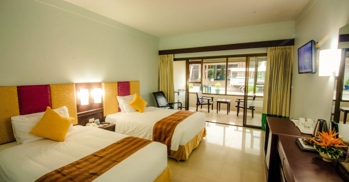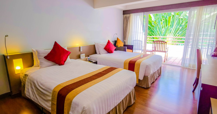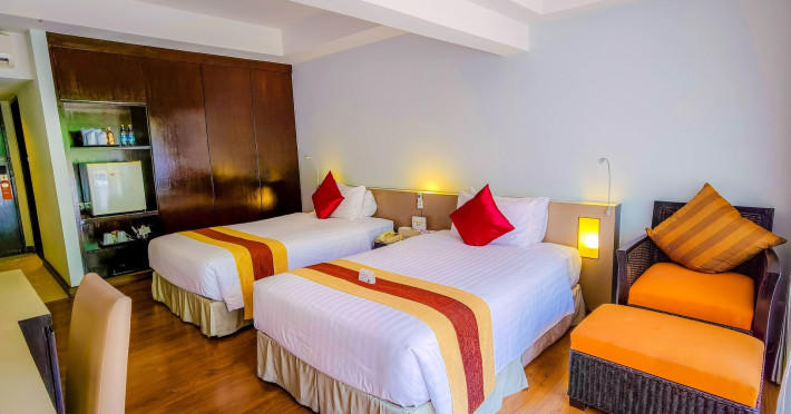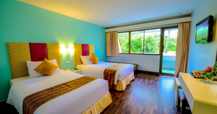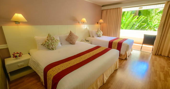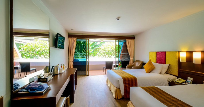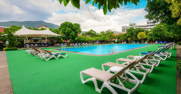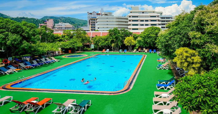 The hotel Patong Resort Hotel is located approximately 1,2 km from a beach and about 500 m from the sea. The nearest restaurants and bars can be found within 500 m. The city centre is around 18 km away. The nearest shops you can reach within around 1 km. There is a shuttle between the hotel and the airport (for a fee). On the beach are beach towels available. The GPS-verified hotel has a 24h reception, a lobby, Wi-Fi, internet access, a lift, a shop as well as parking spaces (limited). In the outdoor area of the property you will find a pool (open all year), where sun loungers and pool towels are available for free. Furthermore, you can relax outdoors on a terrace. You can store your valuables in the safe, and your luggage in the hotel`s storage room. There is also a laundry and ironing service. Ironing equipment can also be borrowed at the hotel. For your comfort the hotel page will ensure you are looked after. Guests at the accommodation can get a wake-up call from the hotel personnel. The energy supply is 220 Volts. For conventions and other business meetings, the hotel offers a business centre as well as a conference area with a catering service. American Express and Euro/Master Card are accepted as means of payment. Catering Breakfast is offered American or from the buffet. When booking all-inclusive, one meal in the à la carte restaurant is included. For the meals, there are a buffet restaurant and the pool bar. The drinks menu of the hotel includes water, soft drinks, coffee and tea and beer. Distances