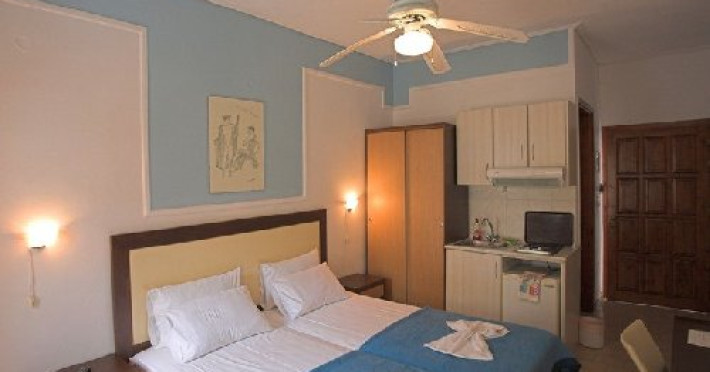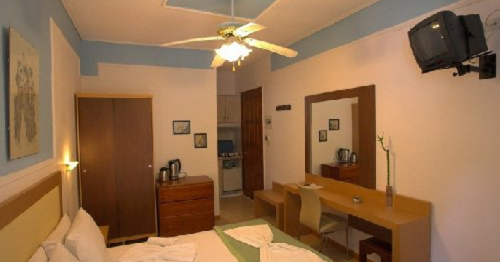 Studiourile sunt compuse dintr-o combinatie de mobilier modern si facilitati (cum ar fi: seif, aer conditionat, TV satelit, ventilator, uscator de par, utilata) si un dram de elemente antice grecesti de stil.