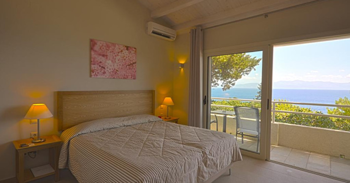 Decorate în nuanţe naturale, camerele de la Paxos Beach au balcon mobilat cu vedere la Marea Ionică. Fiecare cameră are aer condiţionat, televizor LCD cu programe prin satelit şi frigider.
