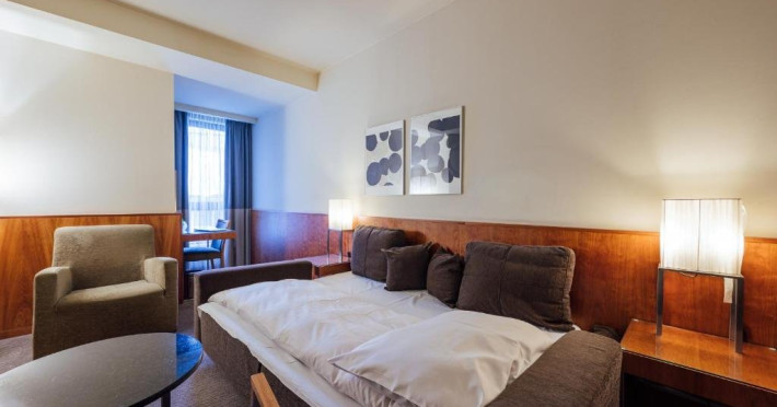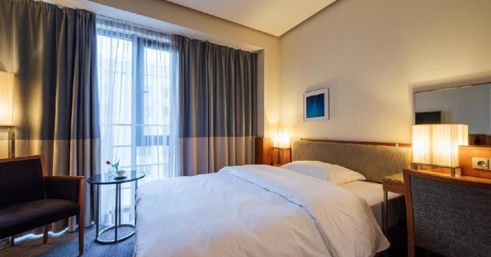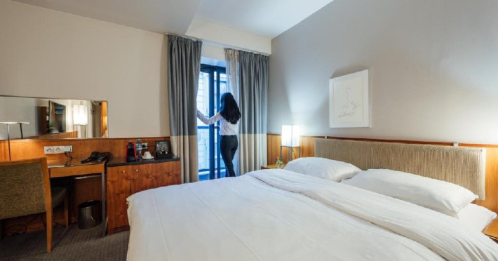 Camerele noastre, proiectate cu stil, radiaz elegant si confort. Selectia atent a testurilor de inalt calitate si a celor mai fine materiale textile sporeste ambianta unic a acestora. Paturile oaspetilor, cu saltele de o calitate superioar si plapume din puf, asigur un somn odihnitor.