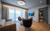 Presidential Suite Vedere Panoramica cu 1 Dormitor, Living si Balcon - Apartament presidential cu vedere panoramica spectaculoasa cu o suprafata totala de 70 m2 cu living spatios, 1 dormitor si balcon mare. Este ideala pentru maxim 4 persoane optional cu canapea extensibila in living. Apartamentul este dotat cu aer conditionat, TV cu ecran plat, prin satelit, seif electronic, mini-bar, facilitati de preparare a cafelei si ceaiului in camera, Wi-Fi gratuit, incuietoare electronica la usi. Bai echipate modern, cu dus, uscator de par, oglinda cosmetica, articole de toaleta pentru oaspeti, prosoape pufoase.