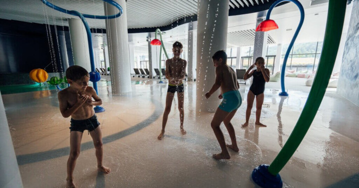 Grand Santerra Spa s-a dezvoltat cu un Spa nou dedicat familiilor cu copii. Aflat in cladirea hotelului Peakture, cu o suprafata totala de 2000 mp, este un adevarat paradis pentru copii, unde e loc pentru distractie si voie buna. Zona splash creata special pentru ei cuprinde piscina de mica adancime, loc de joaca interactiv si colorat cu fantani arteziene in diferite forme florale care se transforma in stropitori. Piscina mare este ideala pentru inot, iar jacuzzi-ul este coltul relaxarii pentru toata lumea. Interiorul Spa-ului are multe spatii de relaxare, sezlongurile din puf iti ofera confort si odihna. Terasele exterioare sunt spatioase si te bucuri de aerul curat, soare si peisajul montan.